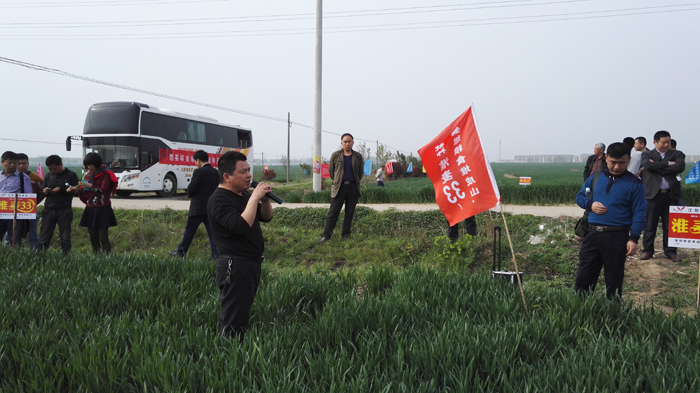 此次會(huì)議分田間觀摩和營(yíng)銷方案政策研討兩部分。9日下午3點(diǎn),與會(huì)代理商們參觀了位于該縣瑤溝鎮(zhèn)官塘村千畝“淮麥33”示范田,“淮麥33”清秀長(zhǎng)勢(shì)再次征服了大家的眼球。觀摩期間,泗洪雙豐種業(yè)張成碧老師分享了“雙豐種業(yè)與淮麥33結(jié)緣”的精彩故事,并介紹了示范田種植管理情況,贏得了大家的陣陣掌聲。