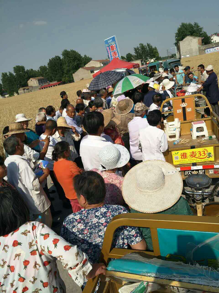 5月中下旬,固鎮、泗縣、靈璧、宿州、五河、懷遠、臨泉、淮北、蒙城、淮南、阜陽、阜南、渦陽、利辛等各縣市緊鑼密鼓,邀請零售商和農戶觀摩淮麥33長勢,介紹品種特征特性和淮麥33近幾年取得的驕人成績、口碑,并以各種創新形式做宣傳訂購等活動,讓零售商賣的放心、農民種的安心、“要想糧食堆成山,就種淮麥33”的口號更加深入人心。在小麥收獲時期,各地紛紛傳來高產喜訊,分享種植淮麥33的喜悅心情。在我們的共同努力下,淮麥33必將掀起新一輪小麥種植高潮,成為安徽白麥區的領軍品種。