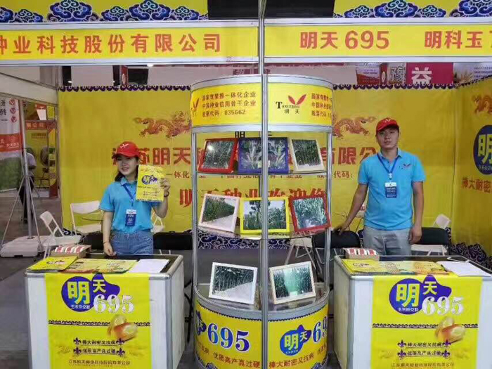 7月2-3日,在小麥雙交會上,公司展廳重點展示并向參觀者介紹了明天種業在河南和黃淮海地區重點推廣的玉米新品種明天695,該品種以“棒大耐密、抗銹病、抗倒伏、抗高溫、優質高產、結實好不禿尖、適應性廣”得到了參會經銷商的廣泛關注。