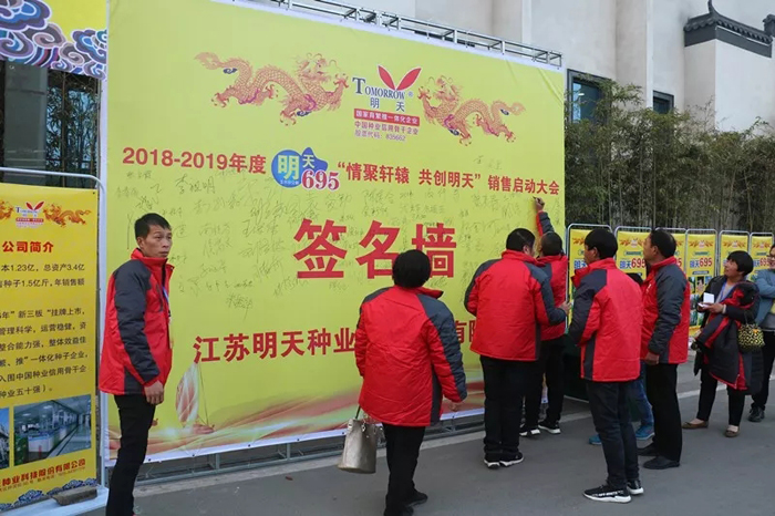 明天是希望,明天更是承諾。有競爭才能有發展,有挑戰才能激發潛能。2018-2019年度,“明天695”注定會是一個豐收年,希望“明天695”的家人們繼續緊跟江蘇明天種業的步伐,共同努力,開創新的未來。昨天,我們一同揮灑汗水,點點滴滴,鑄就“明天695”輝煌的成績;今天,我們一同揮灑汗水,朝朝暮暮,成就著“明天695”美好的未來;明天,讓我們一同揮灑汗水,去開拓“明天695更加輝煌燦爛的明天。